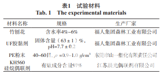 根據(jù)標(biāo)準(zhǔn) LY/T 1842—2009《竹材刨花板》中關(guān) 于竹材刨花板的靜曲強(qiáng)度(MOR)、內(nèi)結(jié)合強(qiáng)度(IB)、 2 h吸水厚度膨脹率(TS)及甲醛釋放量測(cè)定要求制備 相應(yīng)的試樣,其中,靜曲強(qiáng)度試件尺寸為330 mm×50 mm×14 mm,內(nèi)結(jié)合強(qiáng)度和2 h吸水厚度膨脹率的試件 尺寸為50 mm×50 mm×14 mm,甲醛釋放量試件尺寸 為20 mm×20 mm×14 mm。每一性能取6 次重復(fù)試驗(yàn) 的平均值,最后分析不同參數(shù)對(duì)竹/塑復(fù)合刨花板物理 力學(xué)性能的影響。